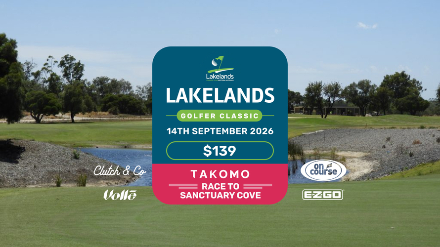 Play the exclusive, members-only Lakelands Country Club in WA on 14th September 2026! You'll enjoy a round of golf, sit down lunch and a huge selection of prizes for only $139 per person.